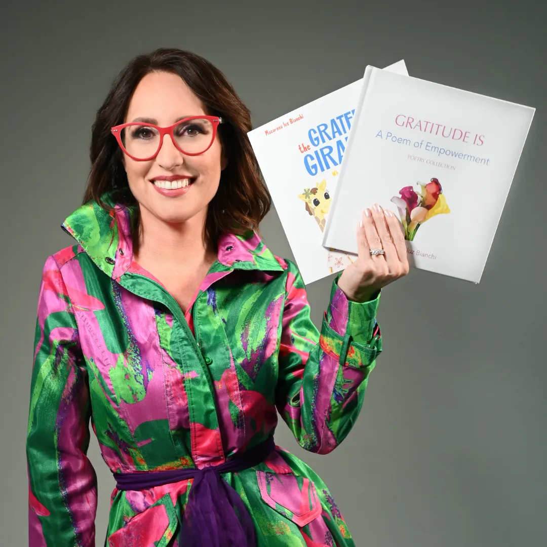 Macarena is also the creator of the beloved Grateful Giraffes children's book series, which teaches young readers the power of gratitude and mindfulness through engaging stories and beautiful illustrations.